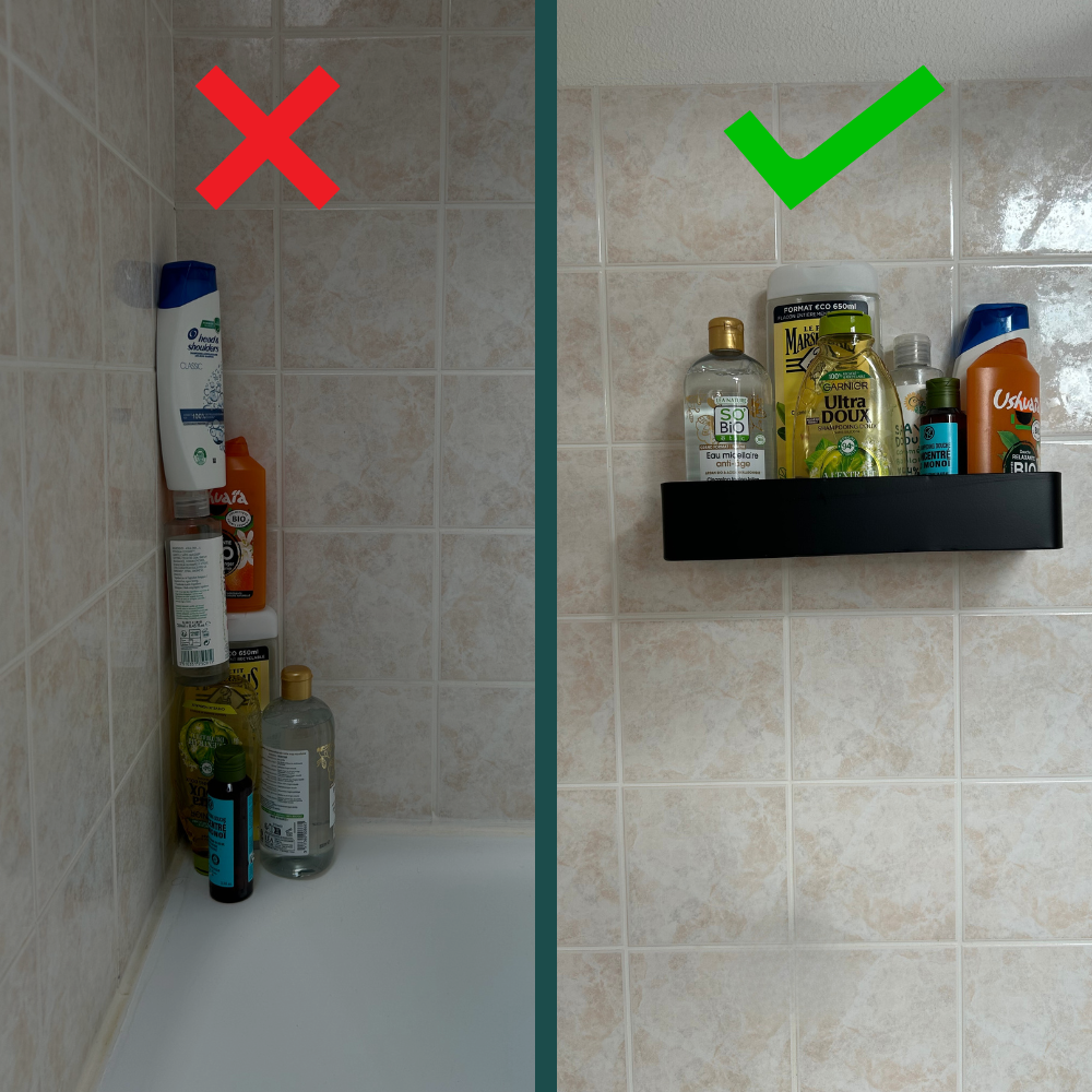 Wenn Eleganz auf Einfachheit trifft! Organisieren Sie Ihr Badezimmer ganz einfach mit unseren bohrfreien und leicht zu installierenden Duschablagen.